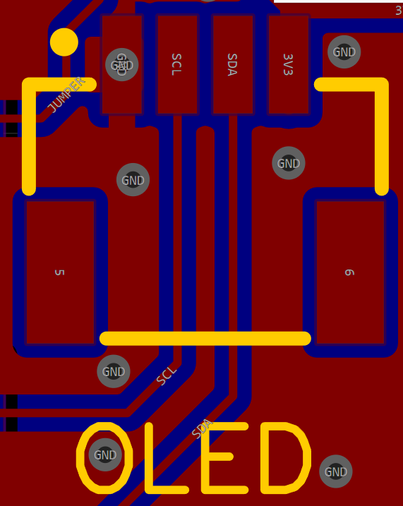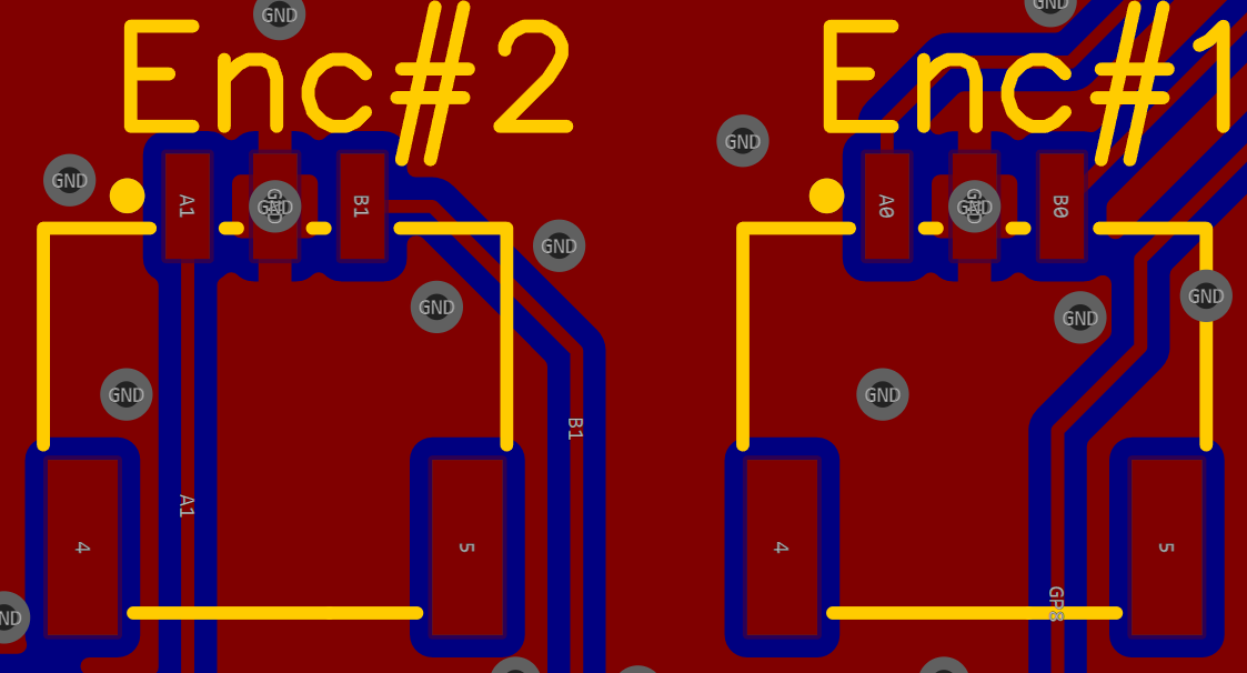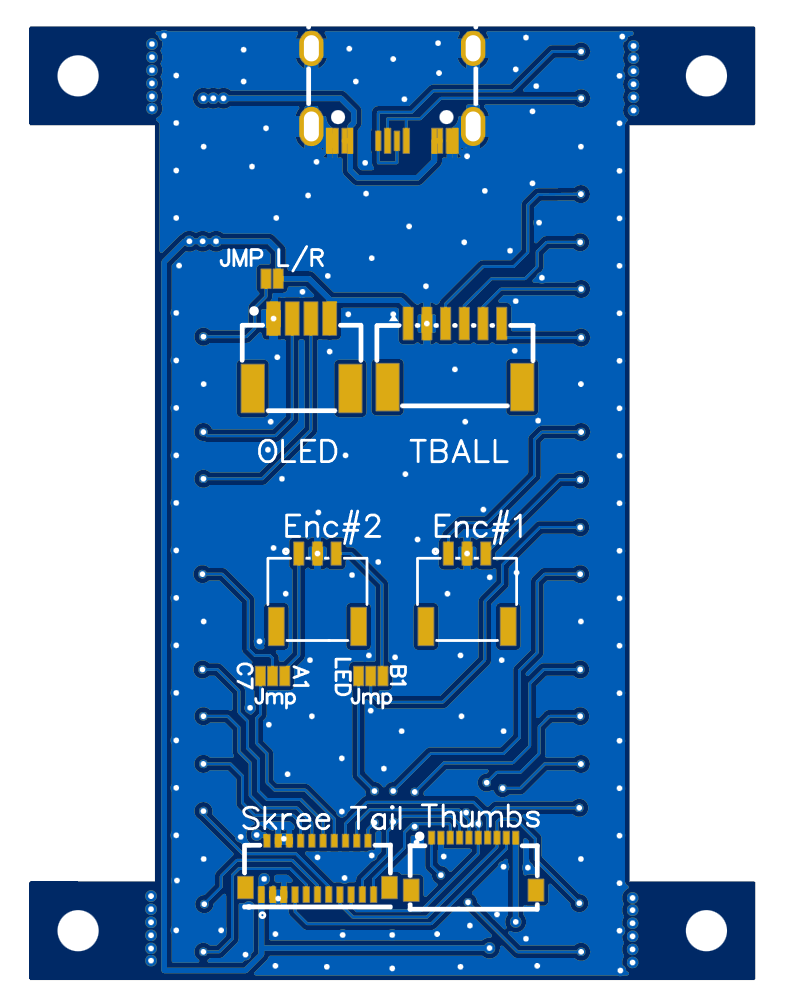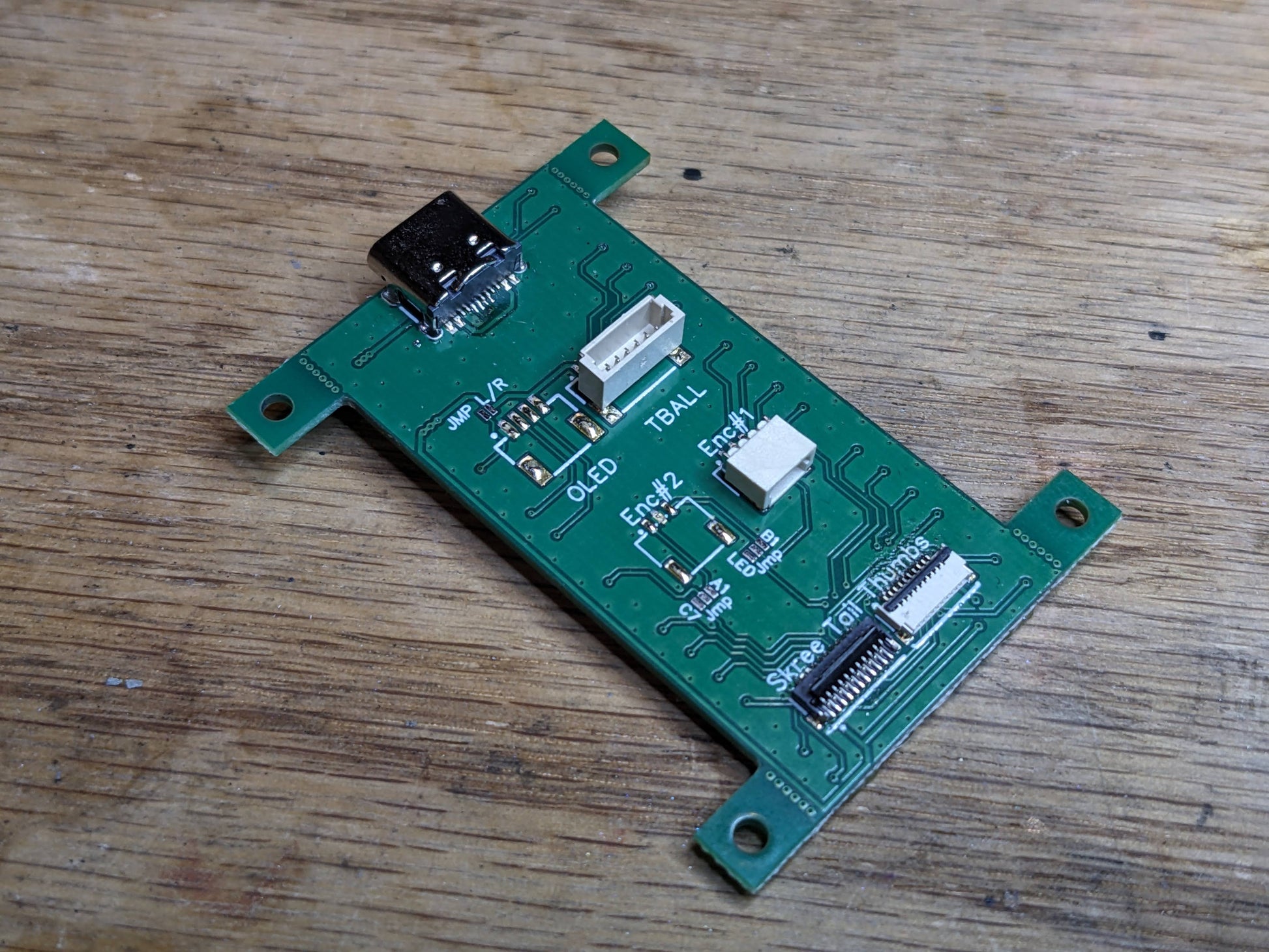JST-SH connections for OLED screens, trackball sensors 3360 and 3389, encoders.