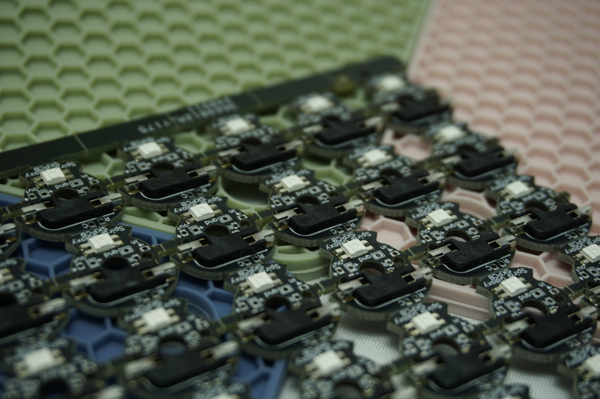 With reasonably accessible through hole pads for easy wiring and two sets of row and column pads to minimize the need to solder two wires on a pad the Spiral Galaxy makes handwiring easier!