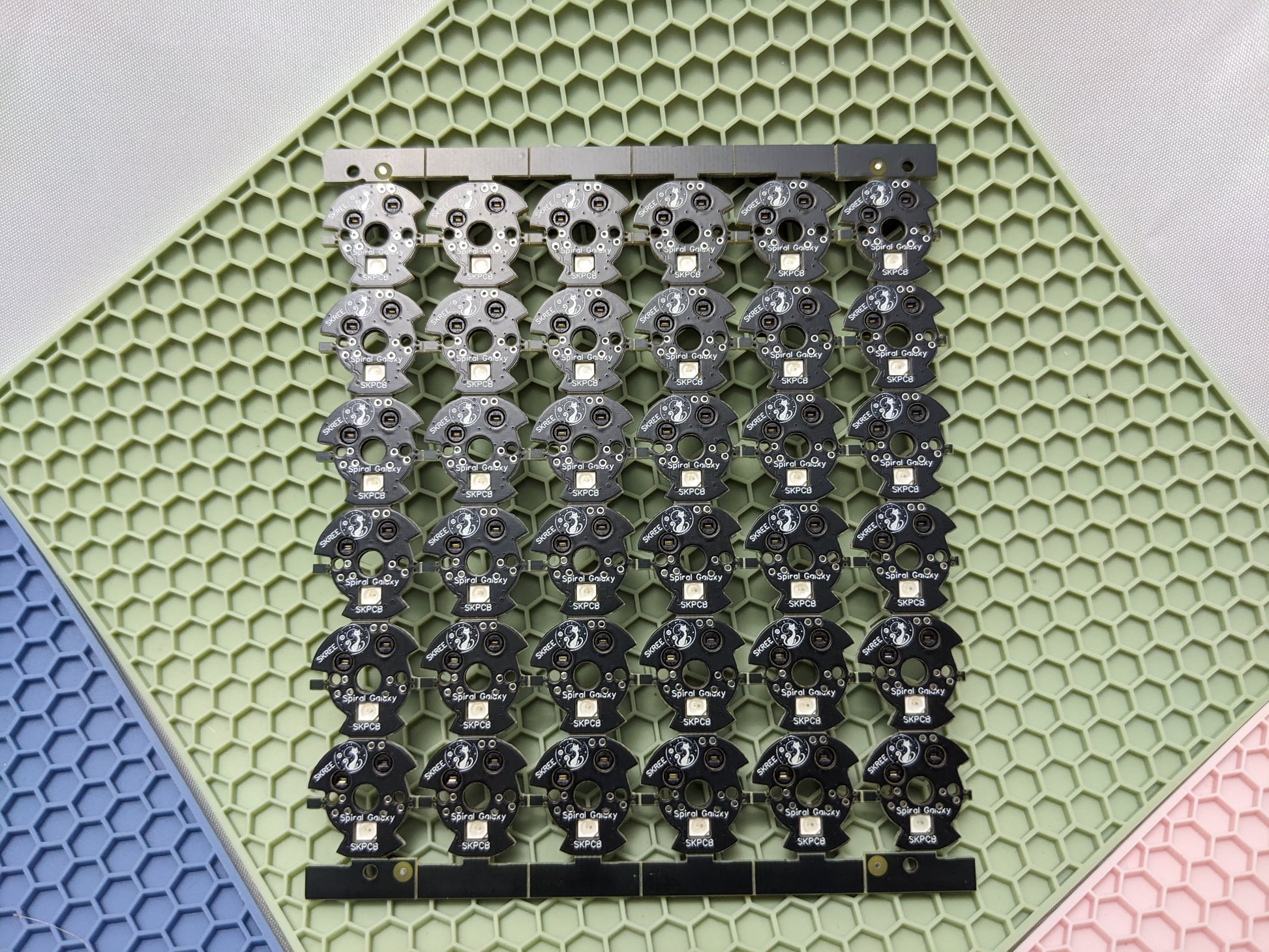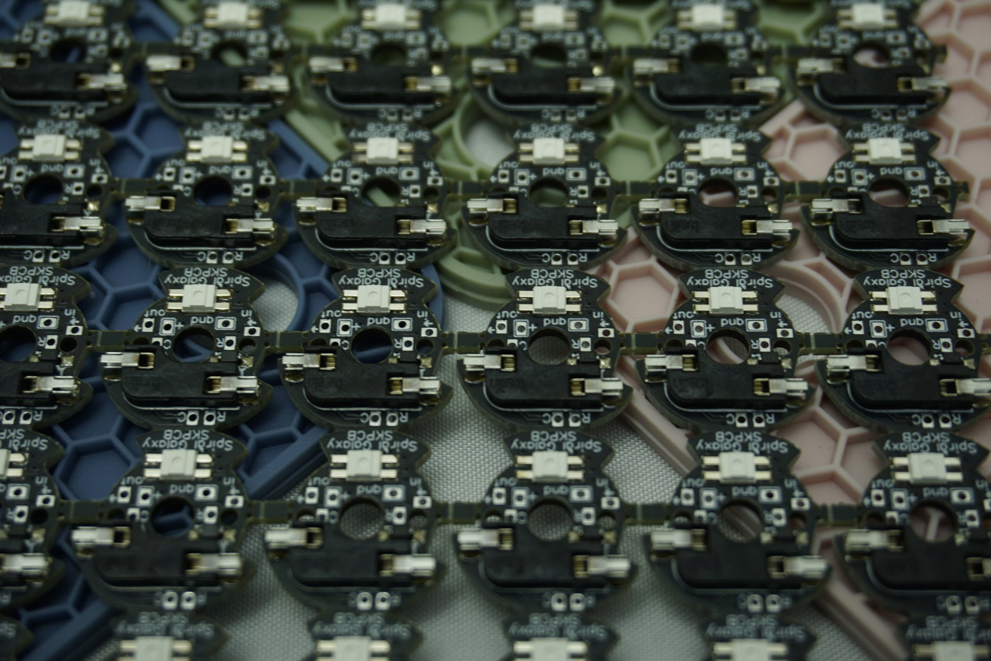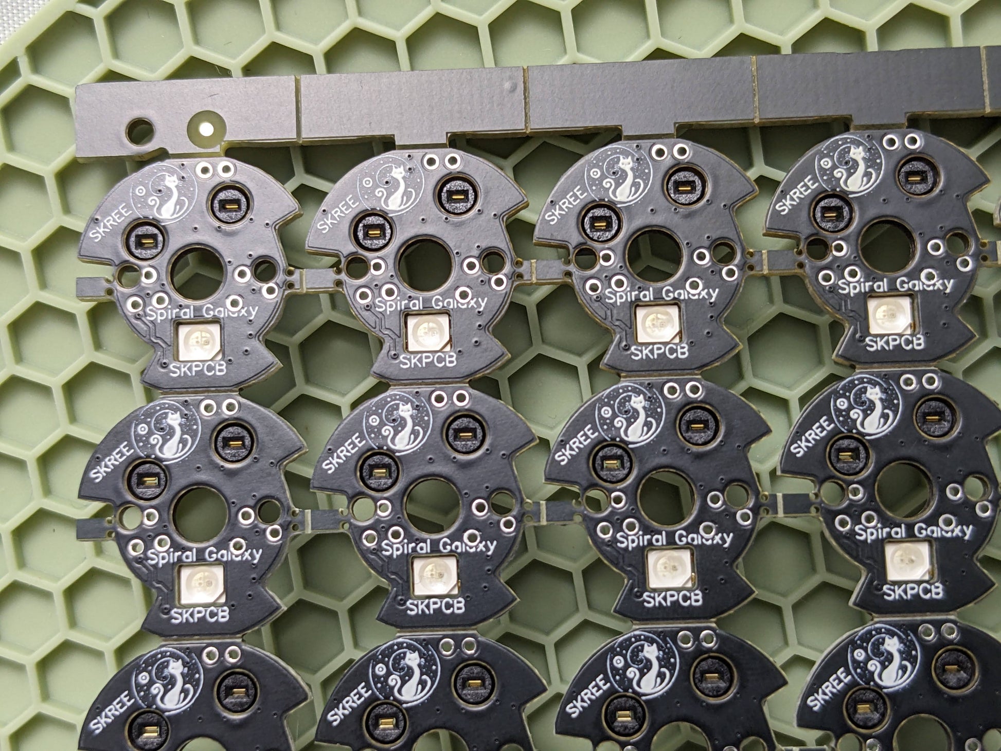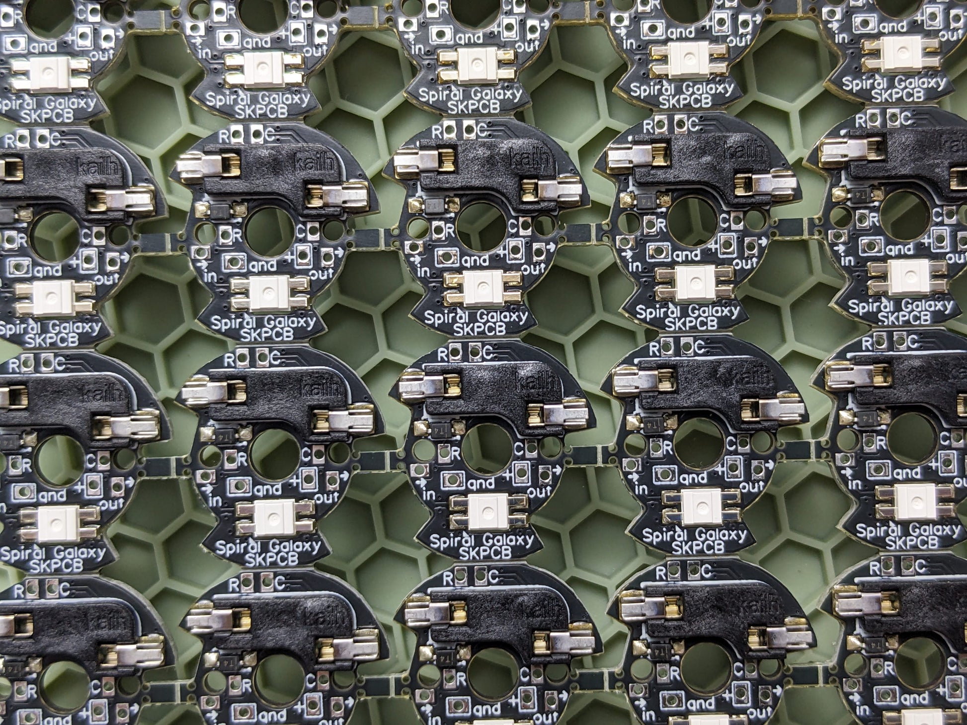 The Spiral Galaxy SKPCB works with Ryanis.cool's Cosmos keyboard generator to provide a simple solution to handwiring keyboards!