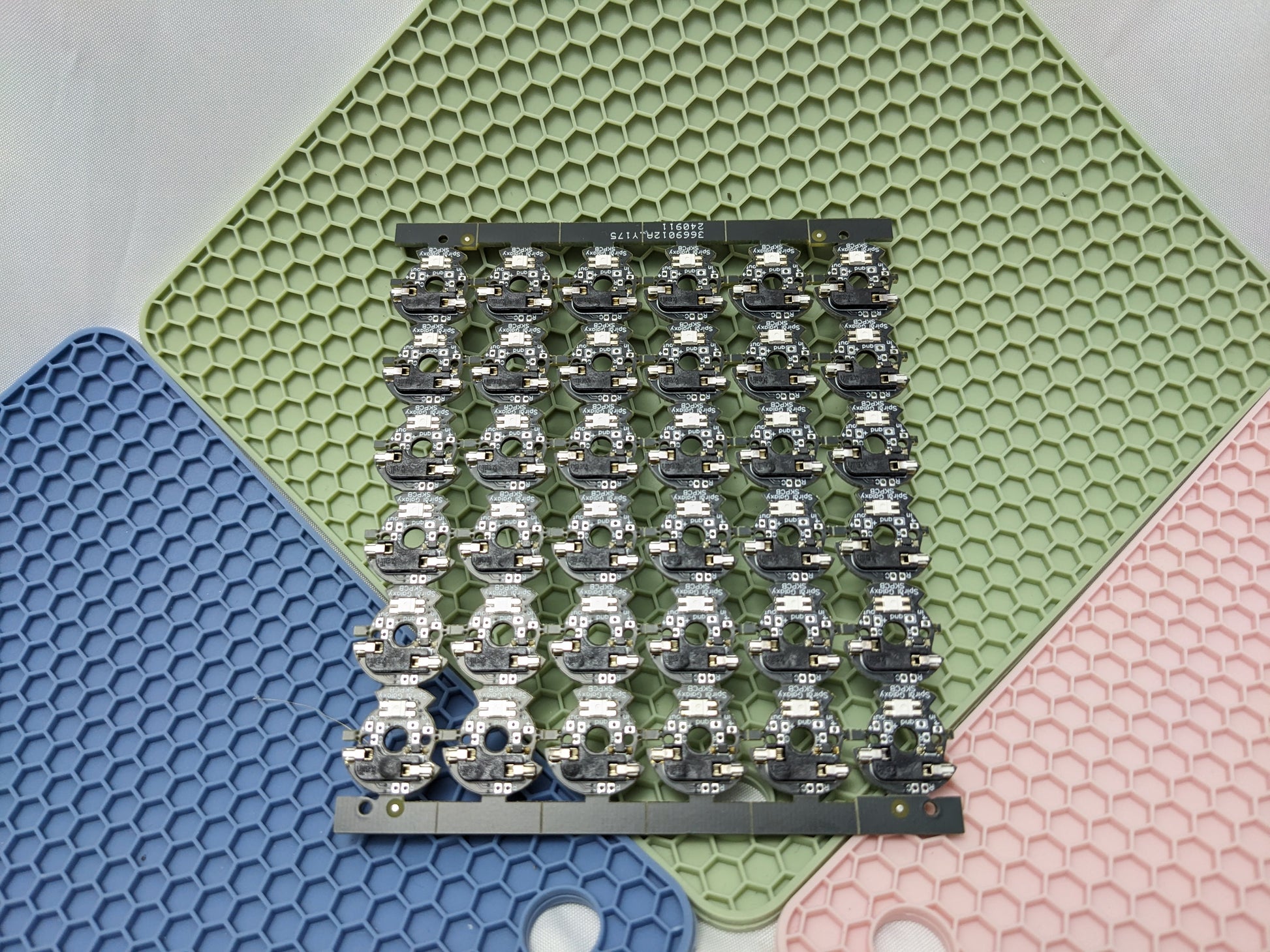As with all my pcbs these come fully soldered and populated with the hotswap socket and diodes. SK6803 mini e leds are optionally populated.
